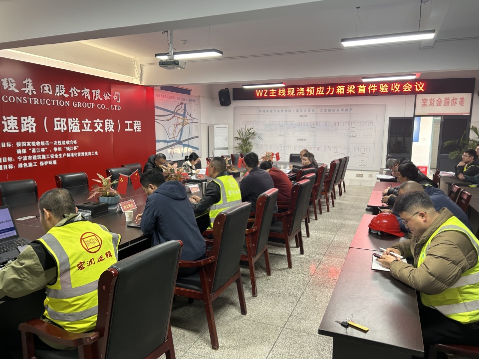 2025年12月23日,宁波环城南路东延快速路(邱隘立交段)工程WZ主线(WZ14-WZ17)首联现浇预应力箱梁顺利通过首件验收,标志着项目主体结构施工迈入新阶段。