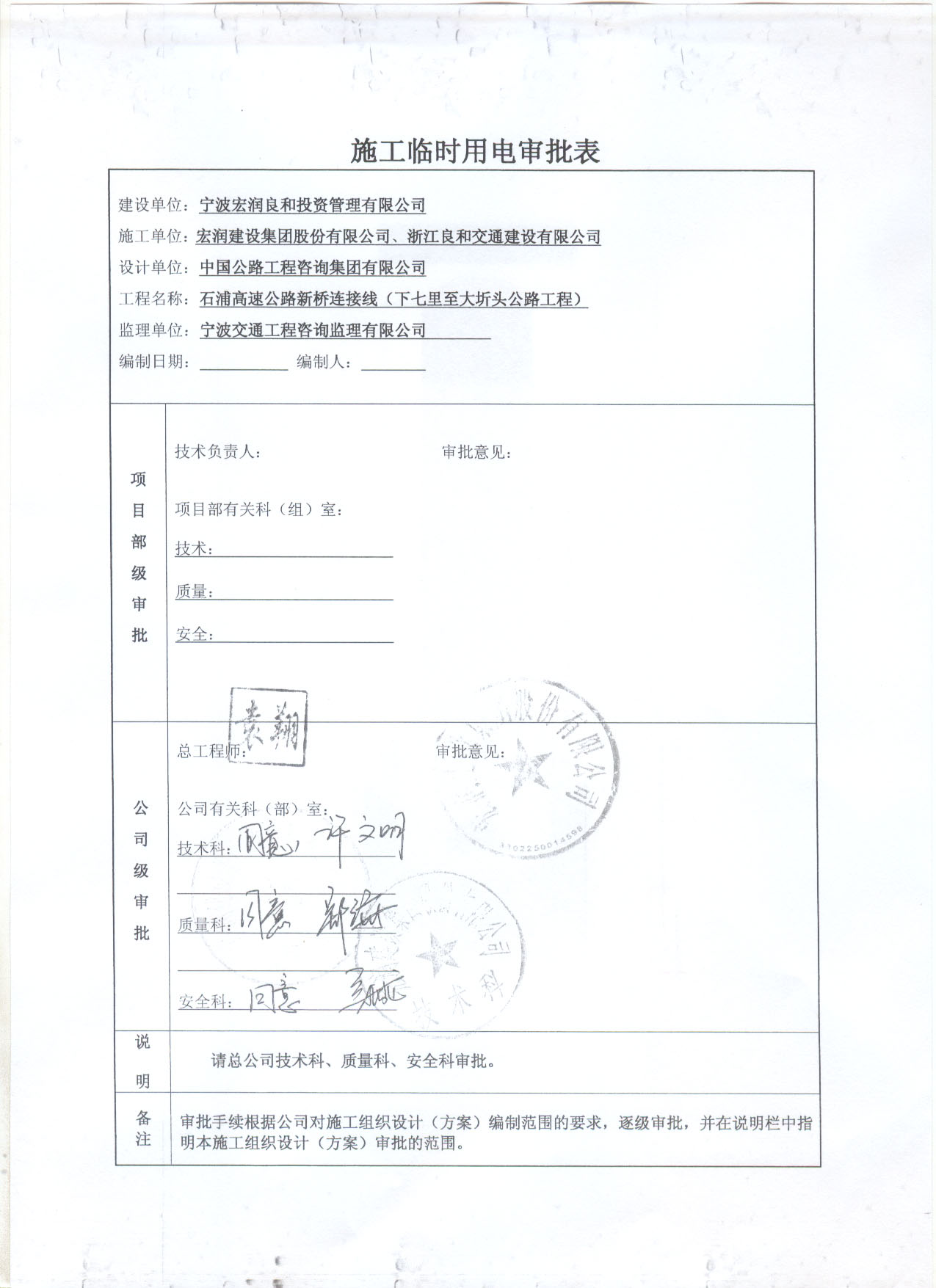 石浦高速公路新桥连接线(下七里至大圻头公路工程)施工临时用电方案